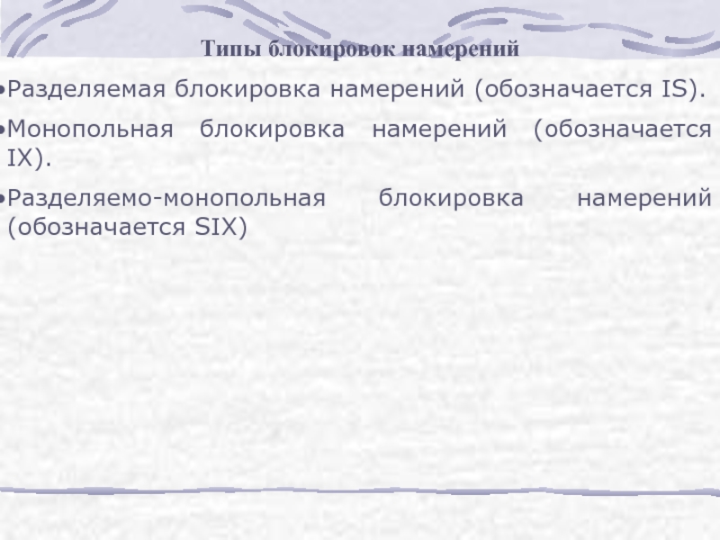 Слайд 23Типы блокировок намерений