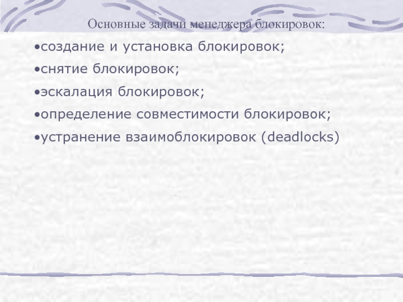 Слайд 14Основные задачи менеджера блокировок: