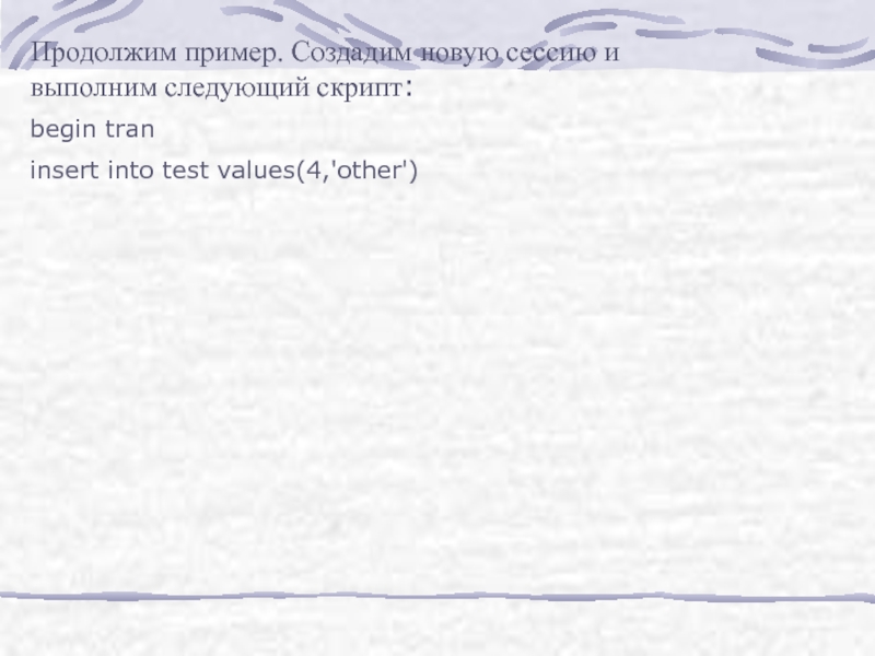 Слайд 20В первой сессии зафиксируем транзакцию: