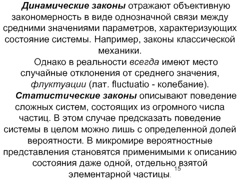 Динамические законы отражают объективную закономерность в виде однозначной связи между средними