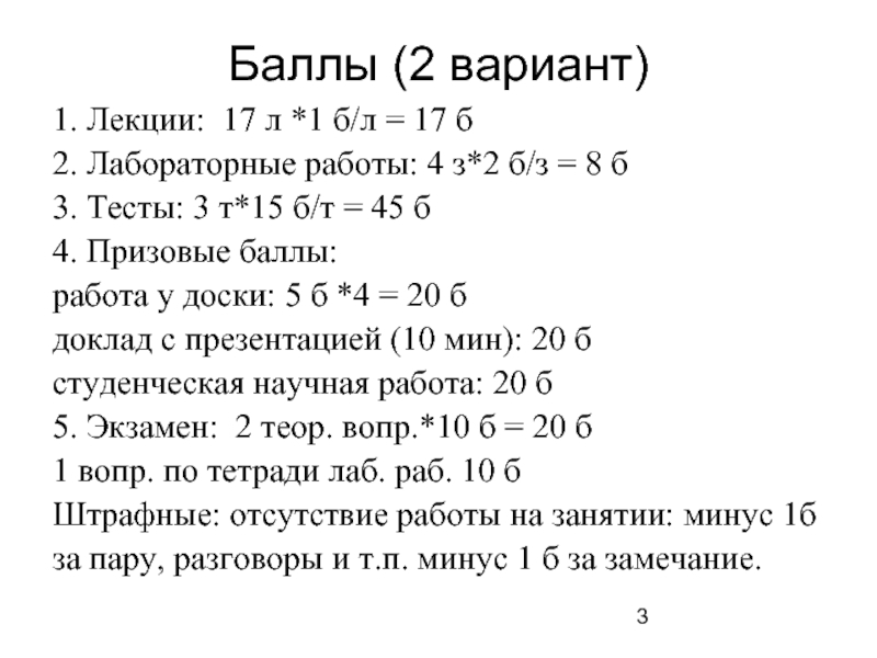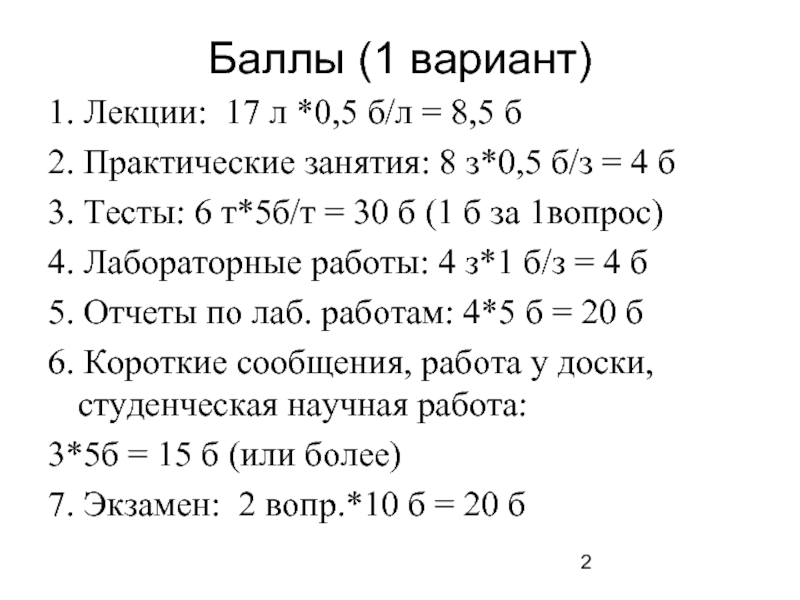 1. Лекции: 17 л *0,5 б/л = 8,5 б