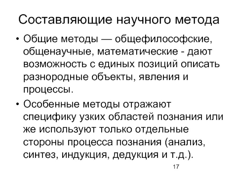 Общие методы — общефилософские, общенаучные, математические - дают возможность