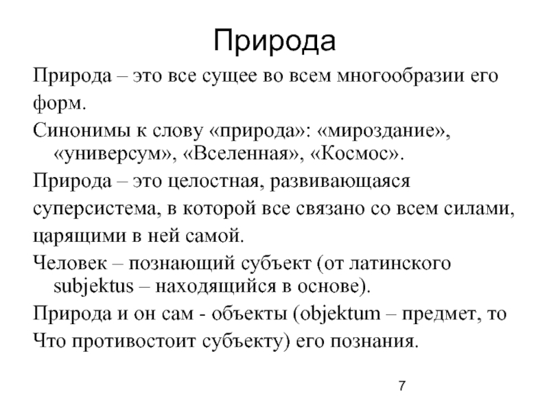 слову «природа»: «мироздание», «универсум», «Вселенная», «Космос».