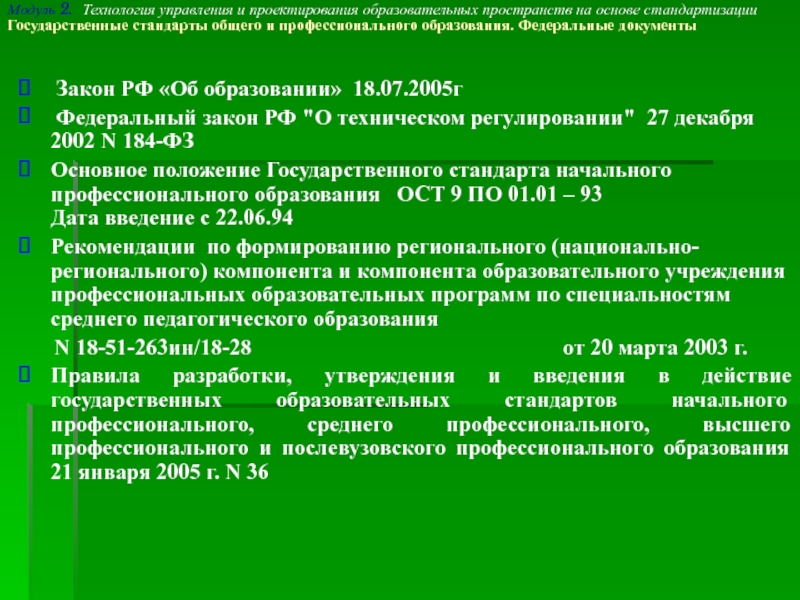 Модуль 2. Технология управления и проектирования образовательных пространств на основе стандартизации