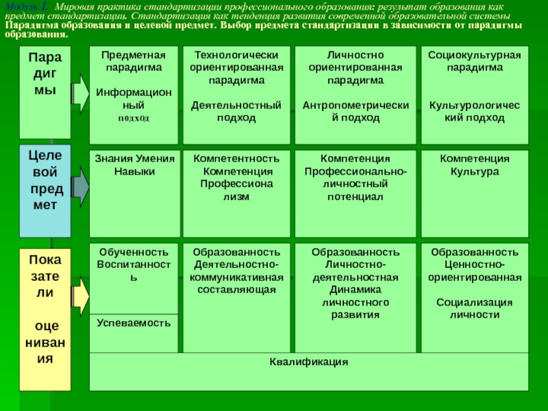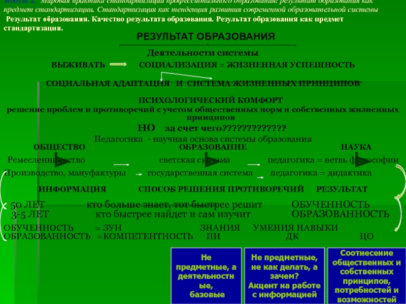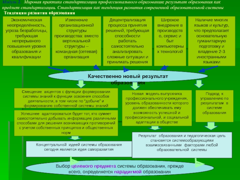 Модуль 1. Мировая практика стандартизации профессионального образования: результат образования как предмет стандартизации. Стандартизация как тенденция развития современной образовательной системы