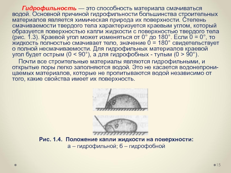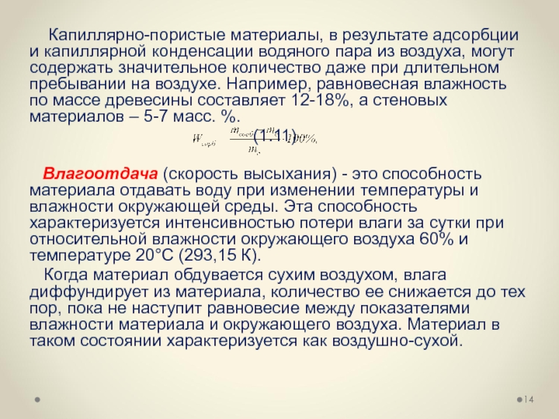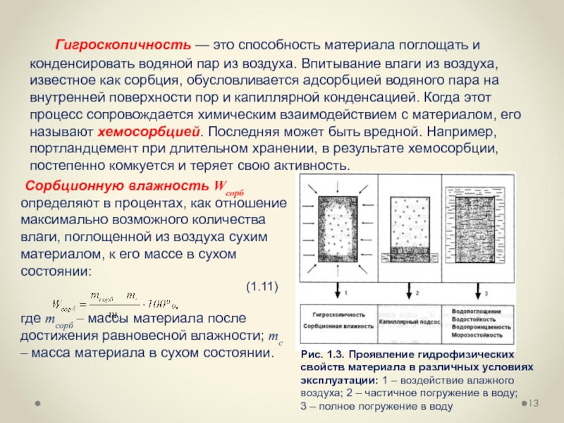 Слайд 13 Гигроскопичность — это способность материала поглощать и конденсировать водяной