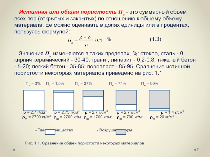 Слайд 7 Истинная или общая пористость Пи - это суммарный объем