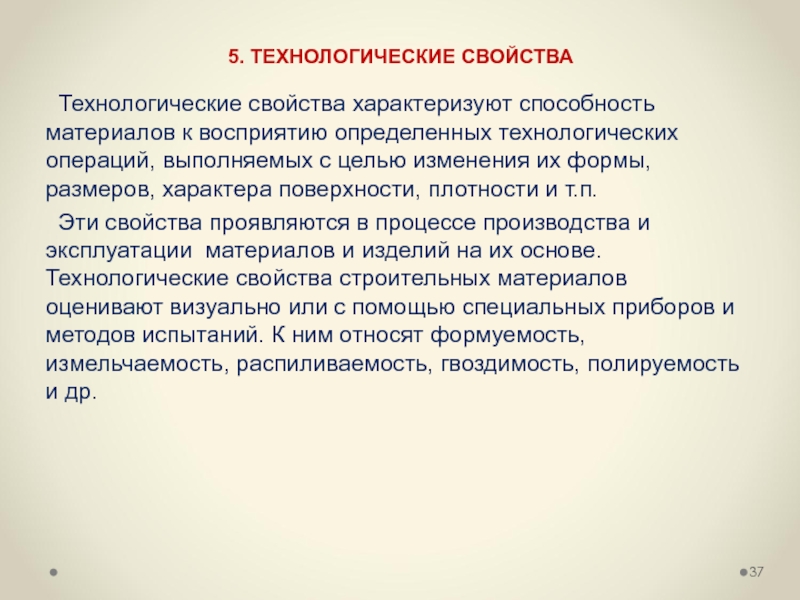 Слайд 37 Технологические свойства характеризуют способность материалов к восприятию определенных технологических операций,