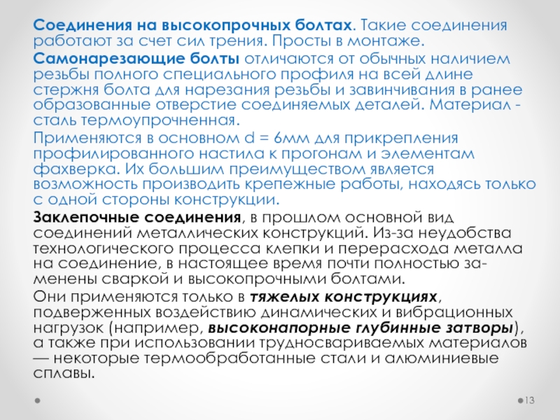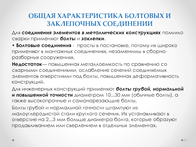 Слайд 11ОБЩАЯ ХАРАКТЕРИСТИКА БОЛТОВЫХ И ЗАКЛЕПОЧНЫХ СОЕДИНЕНИИ