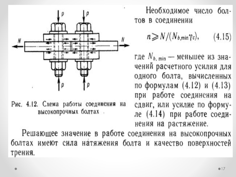 Слайд 13Соединения на высокопрочных болтах. Такие соединения работают за счет сил трения.