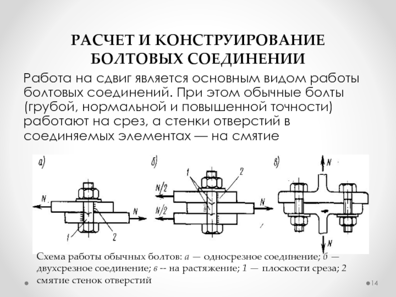 Слайд 14РАСЧЕТ И КОНСТРУИРОВАНИЕ БОЛТОВЫХ СОЕДИНЕНИИ