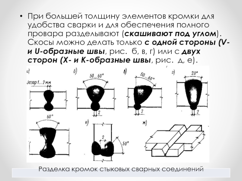 Слайд 6При большей толщину элементов кромки для удобства сварки и для обеспечения