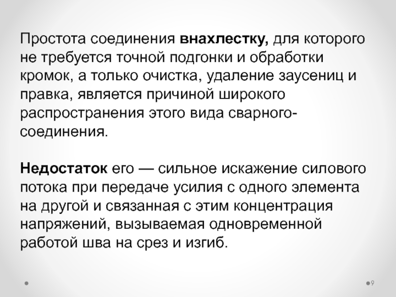 Слайд 9Простота соединения внахлестку, для которого не требуется точной подгонки и обработки