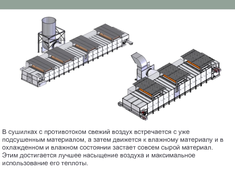 Слайд 3В сушилках с противотоком свежий воздух встречается с уже подсушенным материалом,