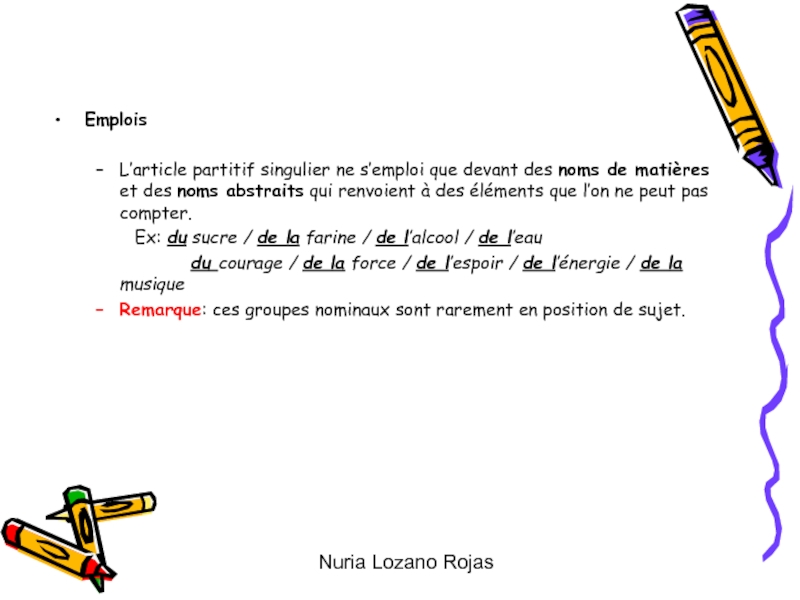 de matières et des noms abstraits qui renvoient à des éléments que l’on ne peut pas compter.