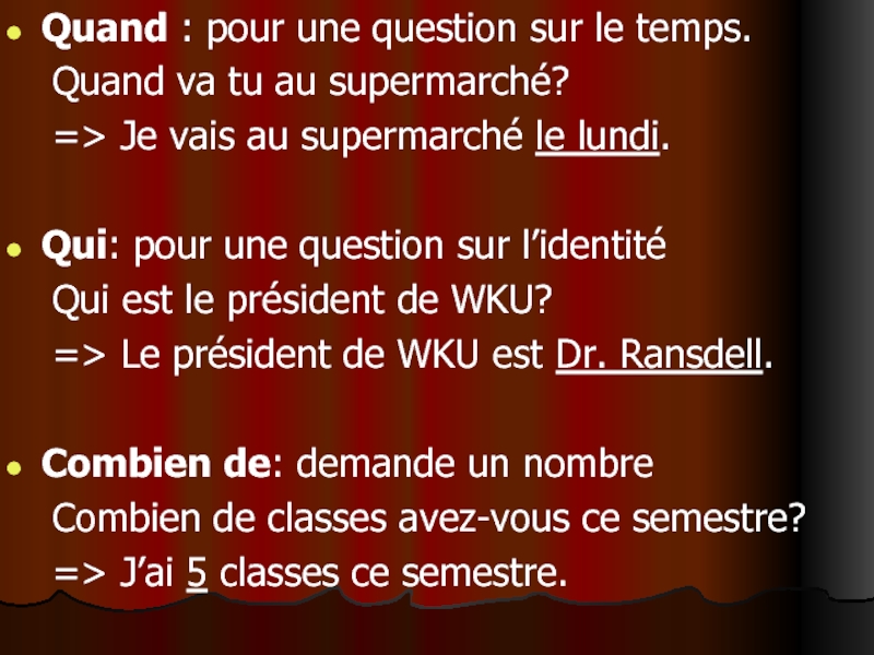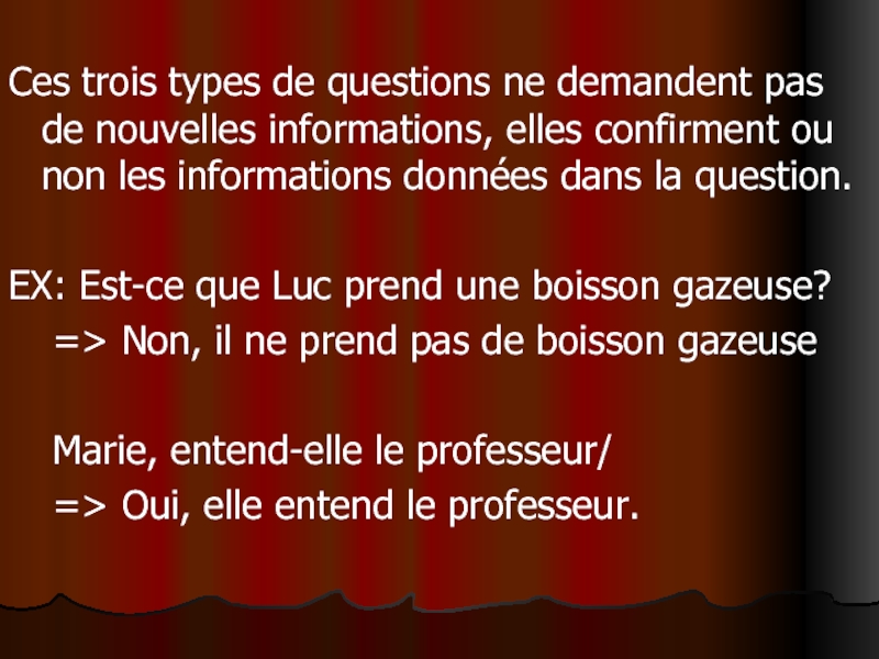 Ces trois types de questions ne demandent pas de nouvelles informations,