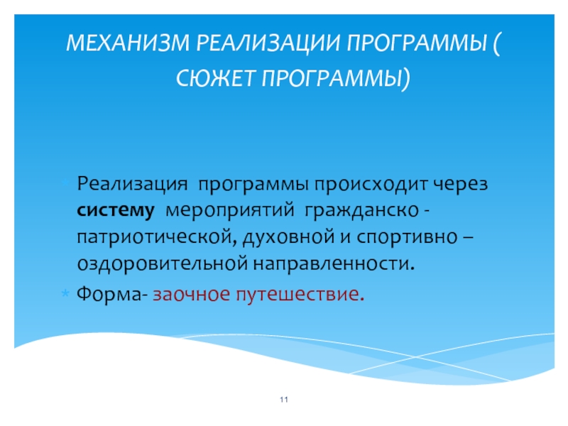 МЕХАНИЗМ РЕАЛИЗАЦИИ ПРОГРАММЫ ( СЮЖЕТ ПРОГРАММЫ)