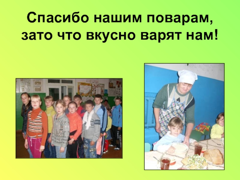 Слайд 10Спасибо нашим поварам, зато что вкусно варят нам!