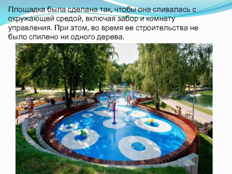 Слайд 3Площадка была сделана так, чтобы она сливалась с окружающей средой, включая