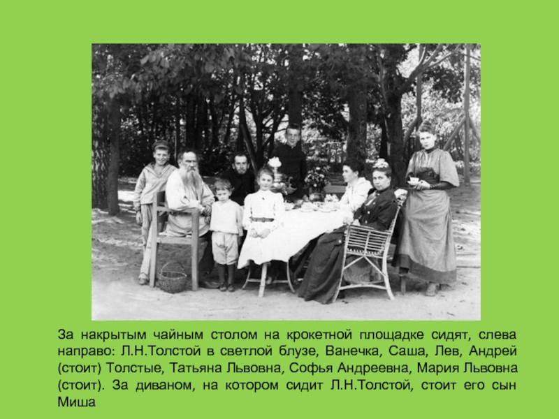 Л. Н. Толстой с детьми крестьян Ясной Поляны.