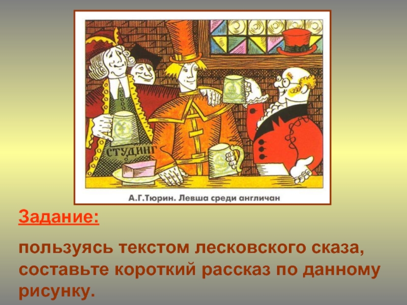 пользуясь текстом лесковского сказа, составьте короткий рассказ по данному рисунку.