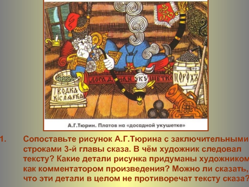 Слайд 22Сопоставьте рисунок А.Г.Тюрина с заключительными строками 3-й главы сказа. В чём