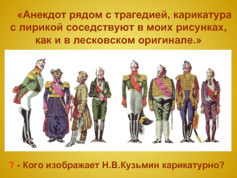 ? - Кого изображает Н.В.Кузьмин карикатурно?