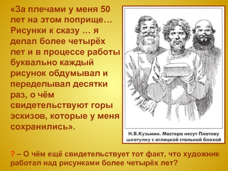 Слайд 15«За плечами у меня 50 лет на этом поприще… Рисунки к