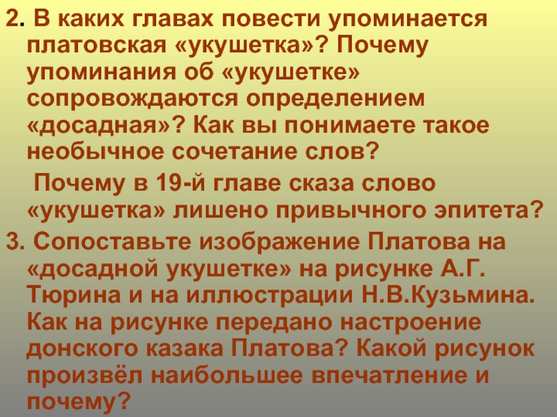 Слайд 232. В каких главах повести упоминается платовская «укушетка»? Почему упоминания об