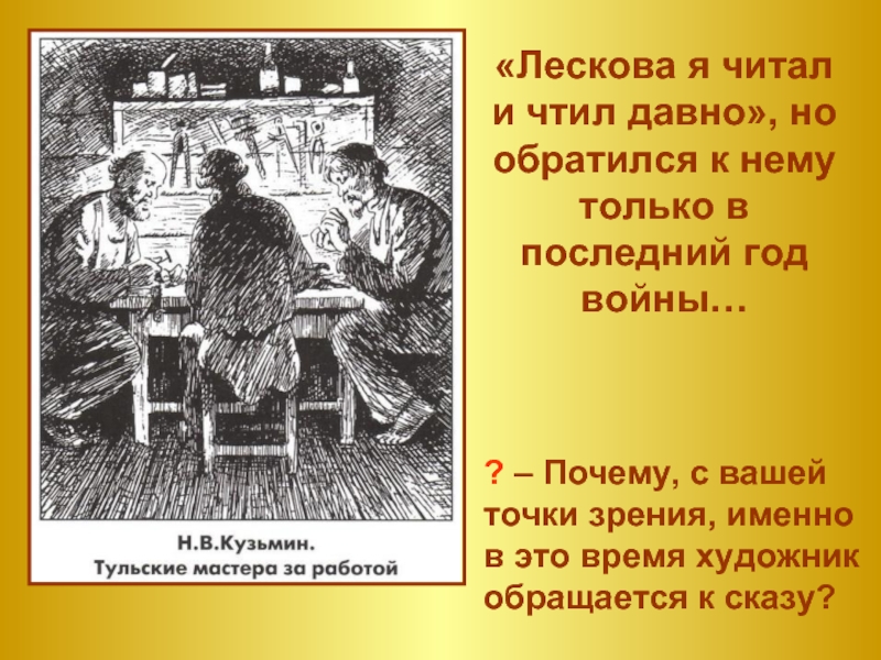 ? – Почему, с вашей точки зрения, именно в это время художник обращается к сказу?
