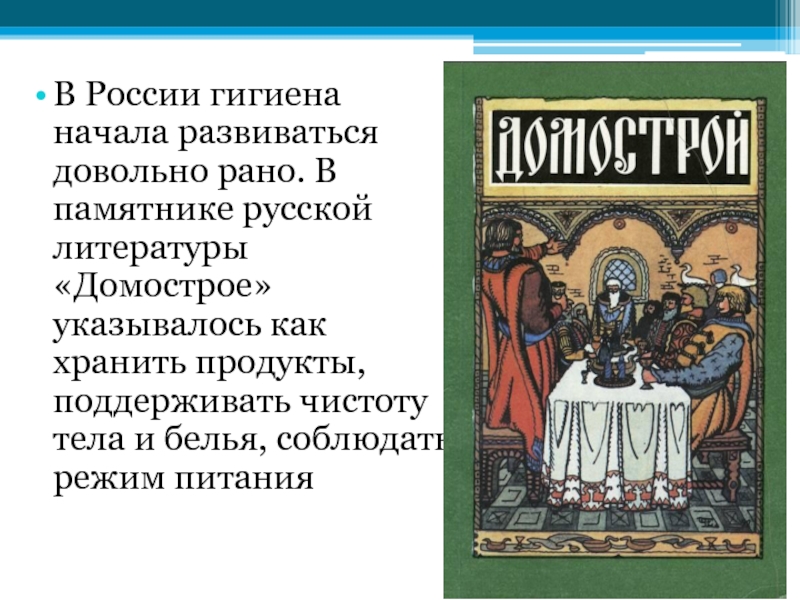 В России гигиена начала развиваться довольно рано. В памятнике русской литературы