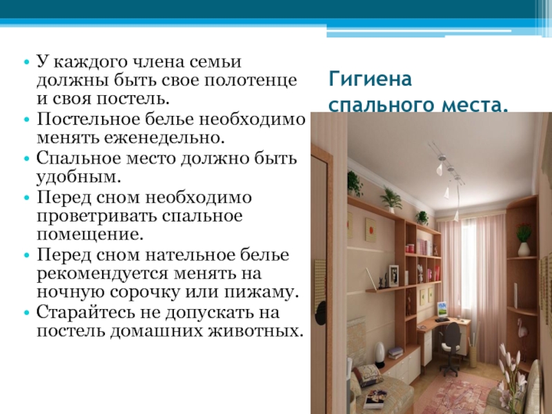 Слайд 22Гигиена спального места.
