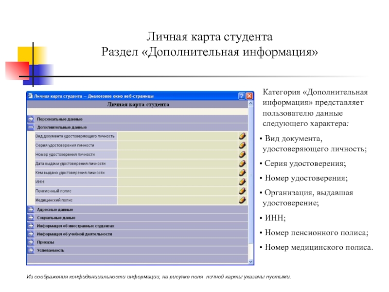 Из соображения конфиденциальности информации, на рисунке поля личной карты указаны пустыми.