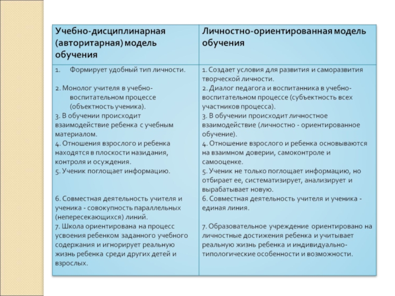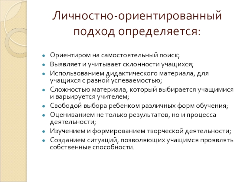 Отношение к ребенку как к личности, способной учиться не по принуждению, а добровольно, по желанию и выбору;