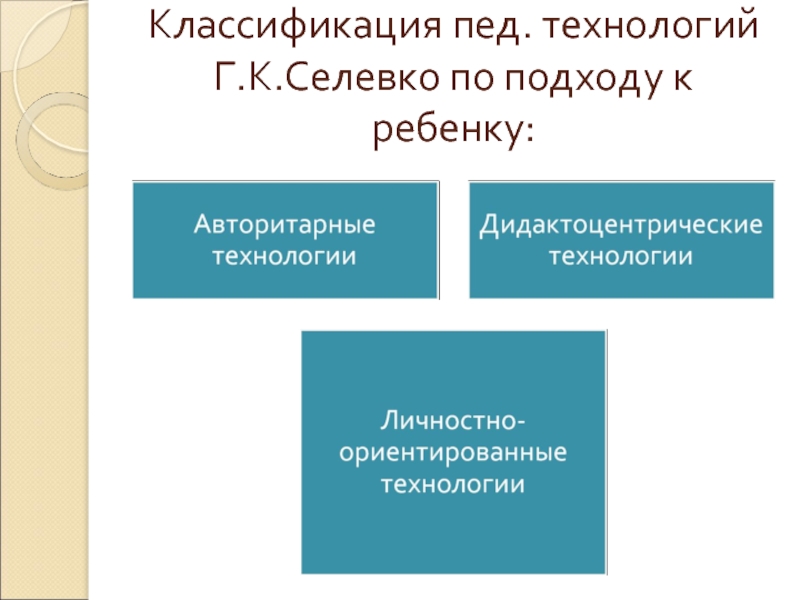 Слайд 3Классификация пед. технологий Г.К.Селевко по подходу к ребенку: