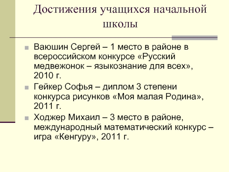 всероссийском конкурсе «Русский медвежонок – языкознание для всех», 2010 г.
