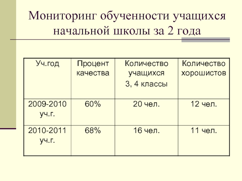 Слайд 8Мониторинг обученности учащихся начальной школы за 2 года
