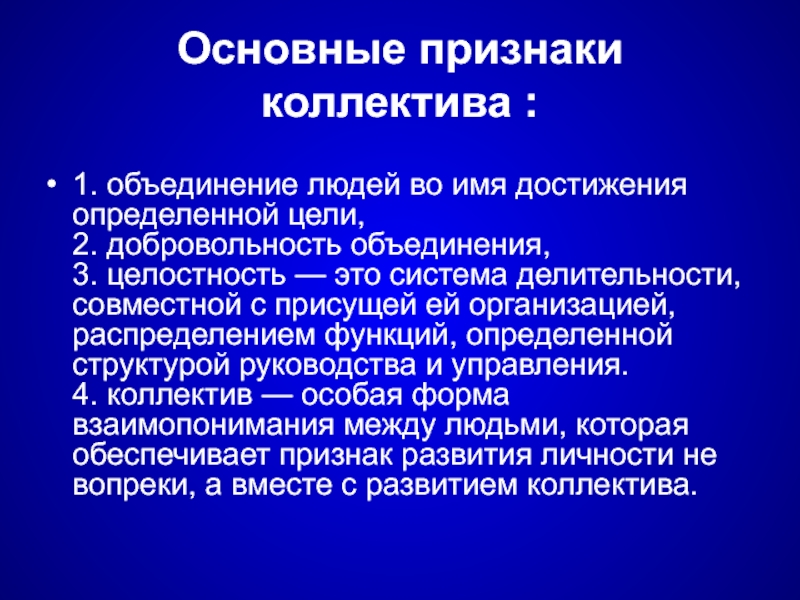 4. коллектив — особая форма взаимопонимания между людьми, которая обеспечивает признак развития личности не вопреки, а вместе с развитием коллектива.