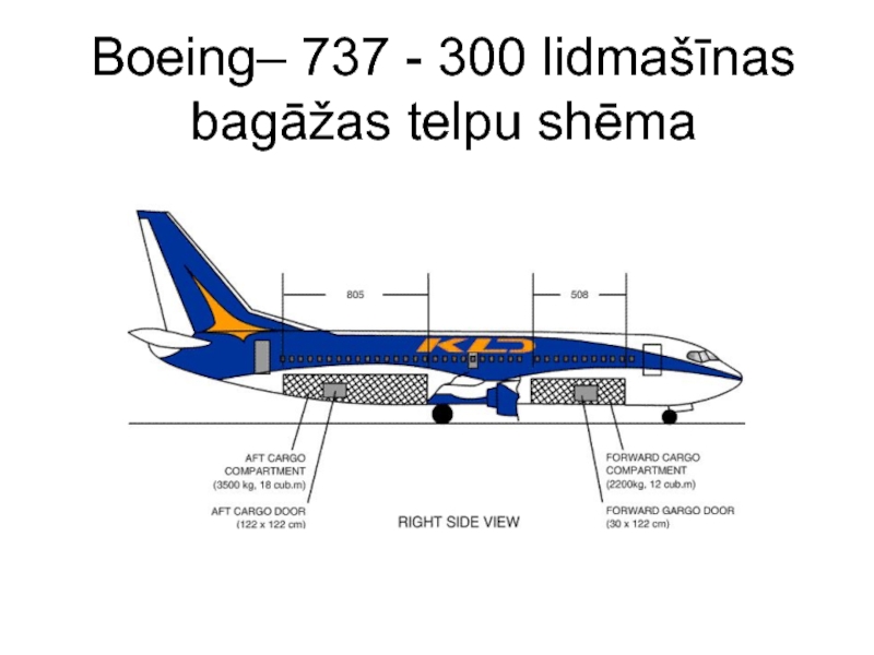 Слайд 142Boeing– 737 - 300 lidmašīnas bagāžas telpu shēma