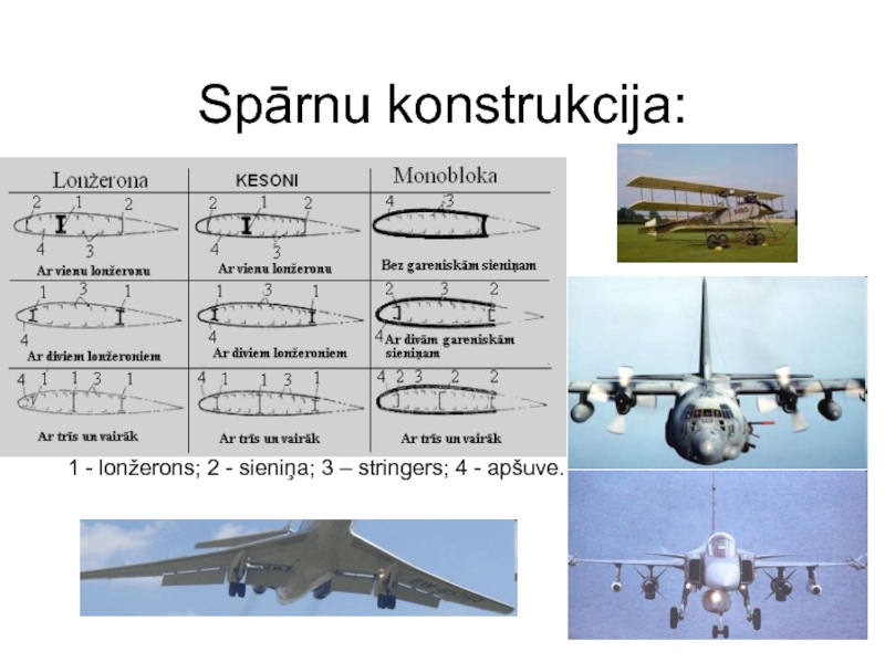 Слайд 37Spārnu konstrukcija:
