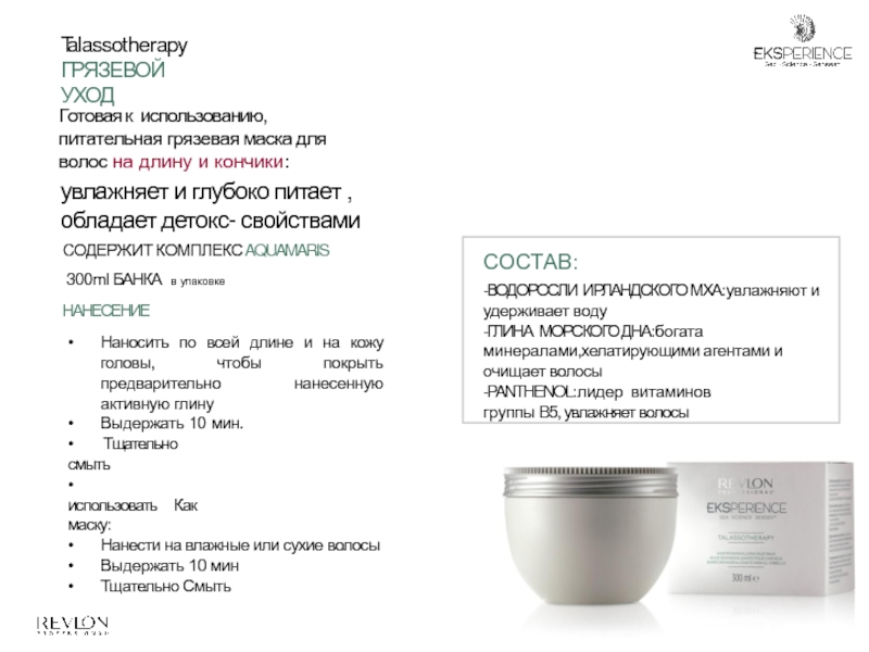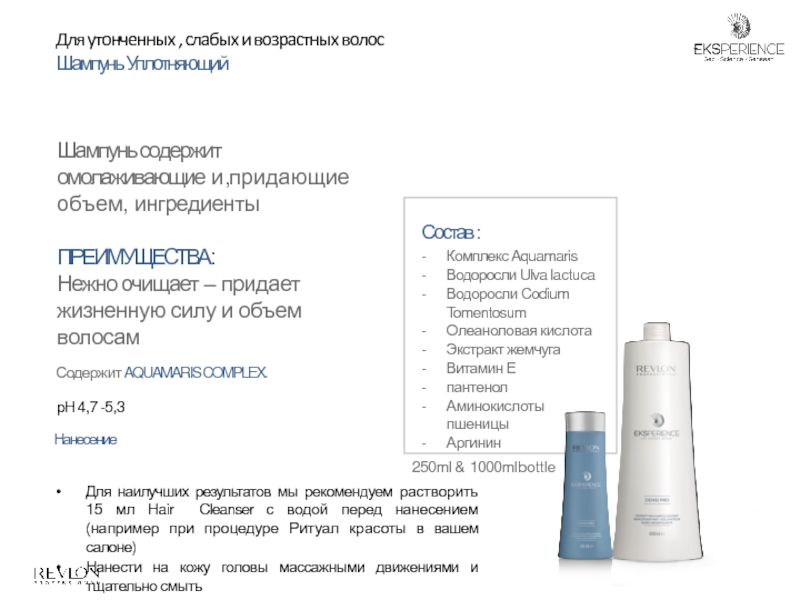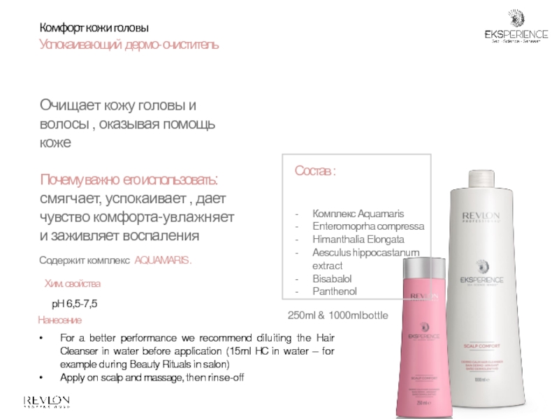 Действие: Глубокое очищение – Увлажнение – Питание – Реминерализация+ особое воздействие при различных аномалиях кожи головы.
