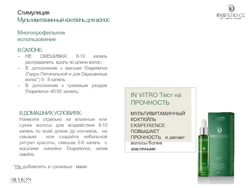 To Boost the mask effect, add 10 drops of Hair Multivitamin Cocktail