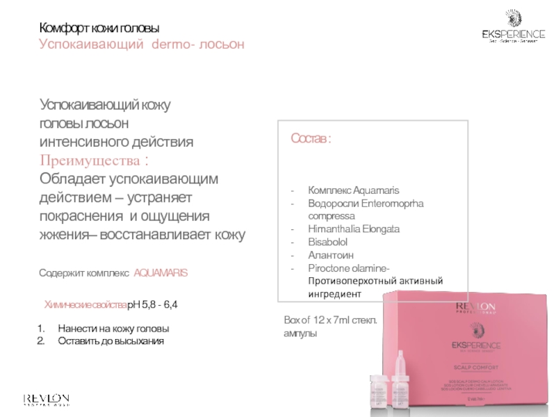 ПОКАЗАНИЯ: Перхоть, Повышенная чувствительность, Потеря волос, Чрезмерная жирность волос и кожи головы.