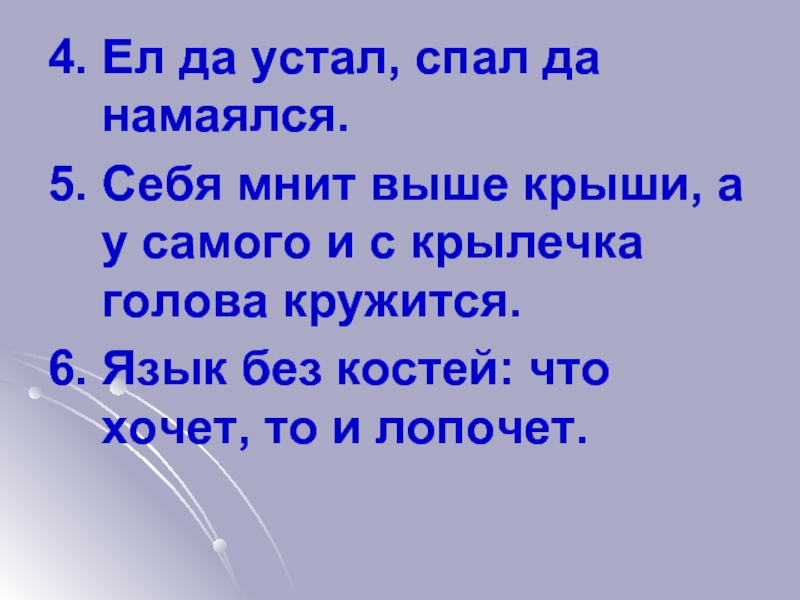 Слайд 314. Ел да устал, спал да намаялся.