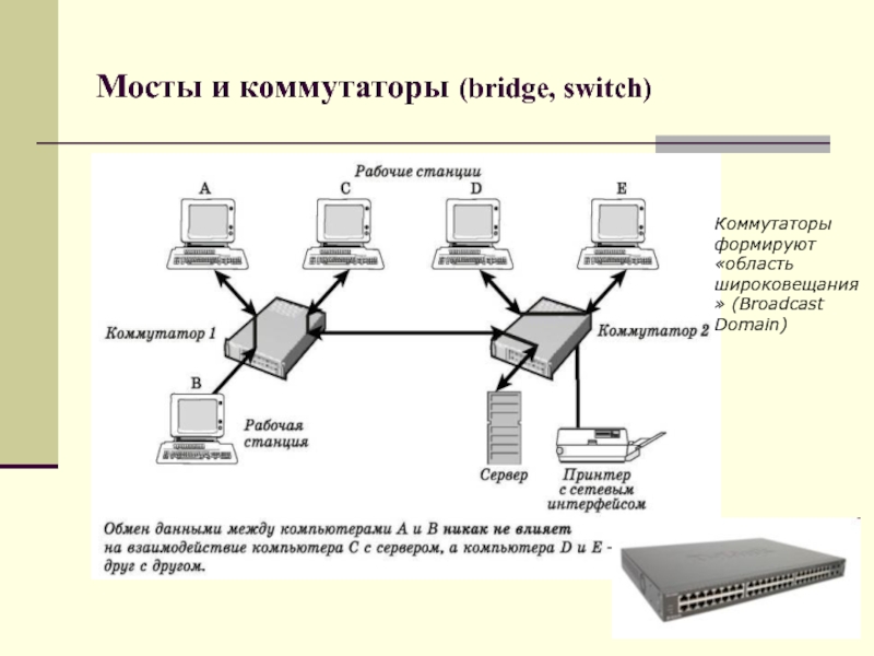 Слайд 15Мосты и коммутаторы (bridge, switch)