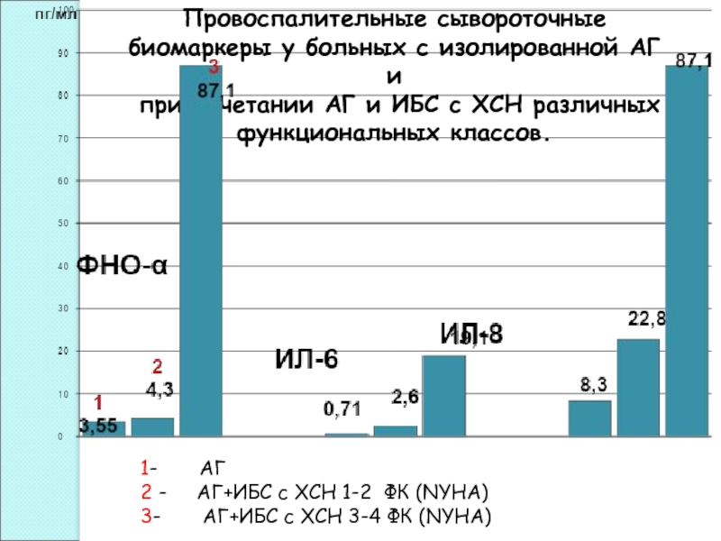 1- здоровые 3-АГ+ИБС с ХСН 1-2 ФК (NYHA)
