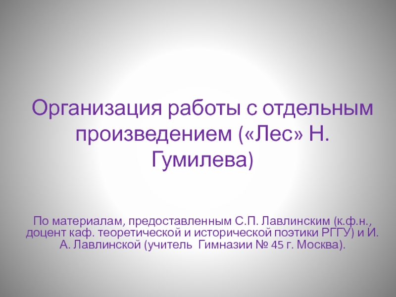Слайд 1Организация работы с отдельным произведением («Лес» Н. Гумилева)