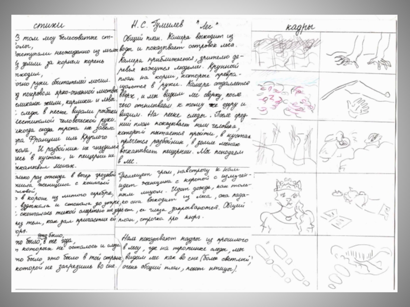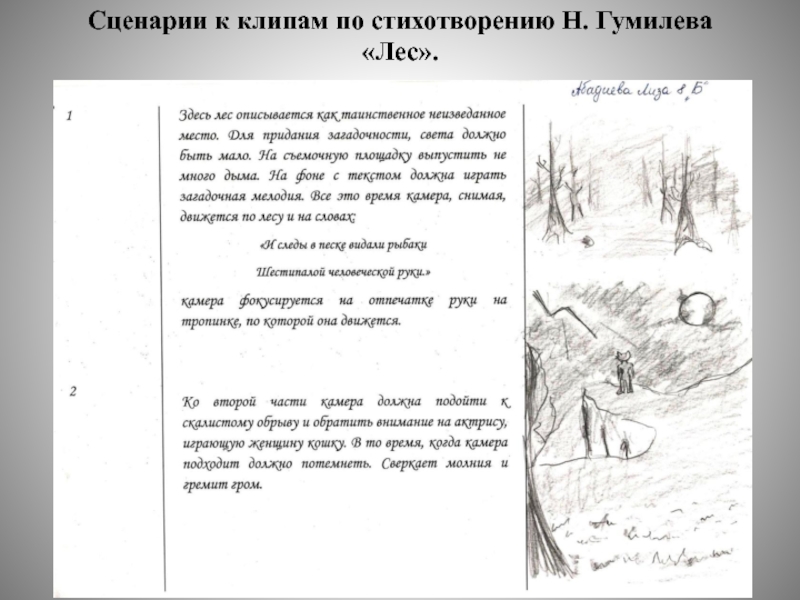 Слайд 22Сценарии к клипам по стихотворению Н. Гумилева «Лес».