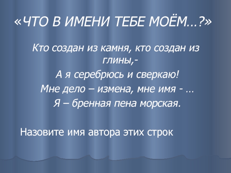 Слайд 8«ЧТО В ИМЕНИ ТЕБЕ МОЁМ…?»