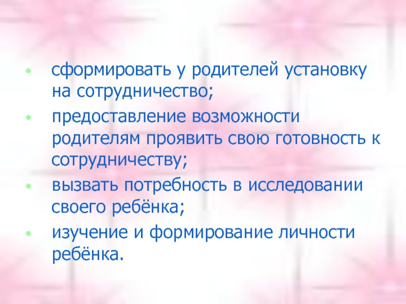 создание у себя и трансляция родителям положительного образа ребёнка;
